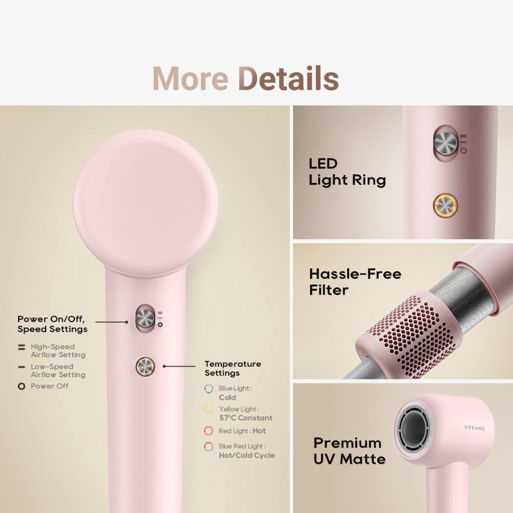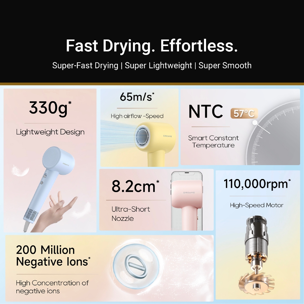 【2 Years Warranty】 Dreame Hair Gleam Hair Dryer | High Speed 2 Mins Fast Drying | 330g Lightweight