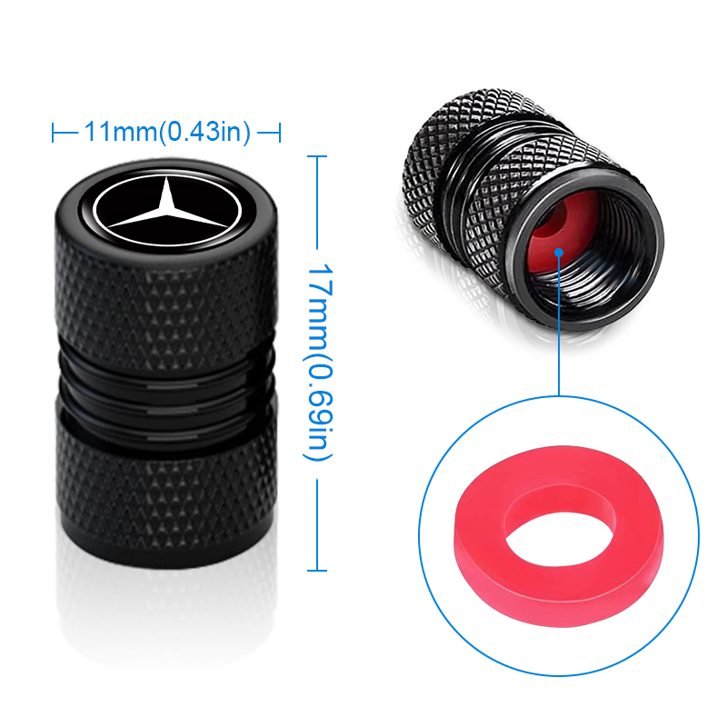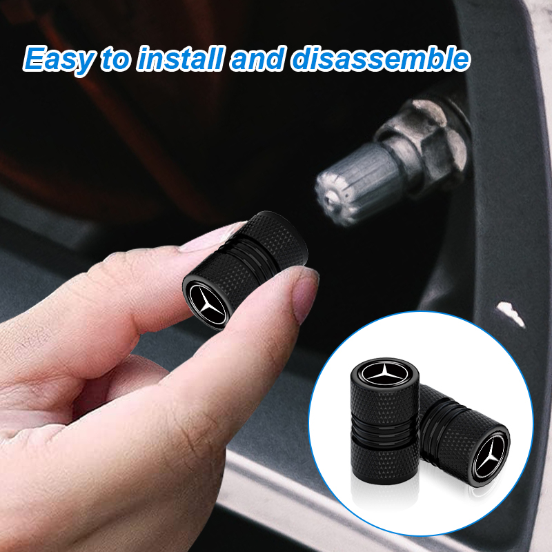 4pcs Aluminium Alloy Car Tire Anti-leak Cap Double Threaded Styling Car Logo Wheel Valve Cover for Mercedes Benz Class W212 W211 W210 W203 W204 W205 CLA GLK CLS A C E