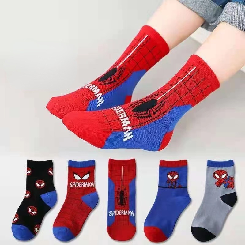 5Pairs Disney Baby Socks Spiderman Cartoon Anime Cotton Boys Tube Socks Children Autumn Winter Socks