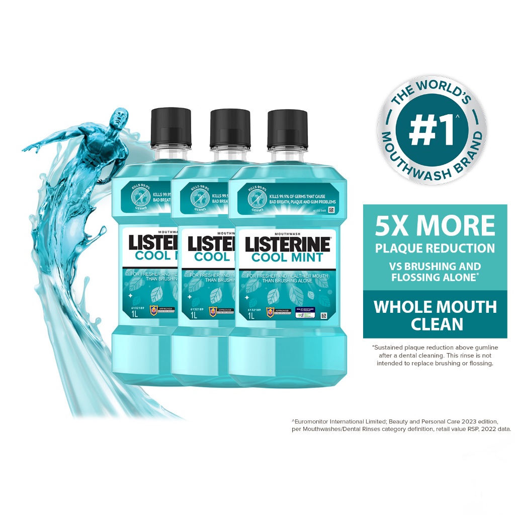[Bundle of 3] Listerine 1L Mouthwash Value Pack (Cool Mint/Cool Mint Zero/Total Care Zero/Original/Green Tea/Healthy Whi