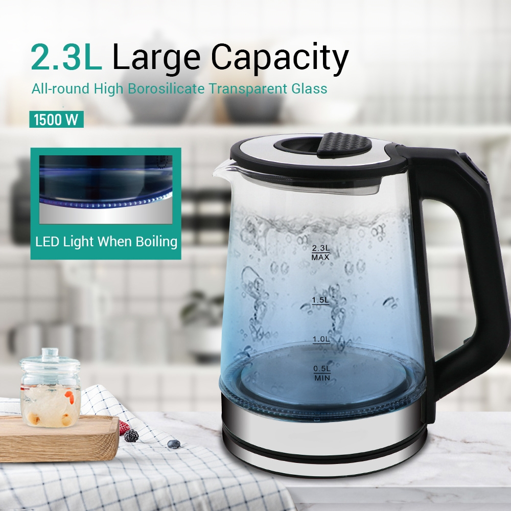 Electric 2.3L Glass Kettle Automatic Power-off LED Light Boil-Dry Protection Premium Water Bottle EH0036