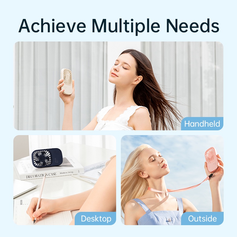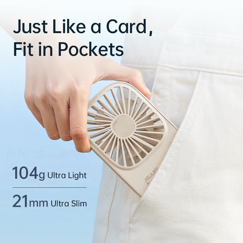 JISULIFE Pocket Mini Fan Portable Handheld Slim Safety Lock 3 Speeds Strong Wind Free Landyard