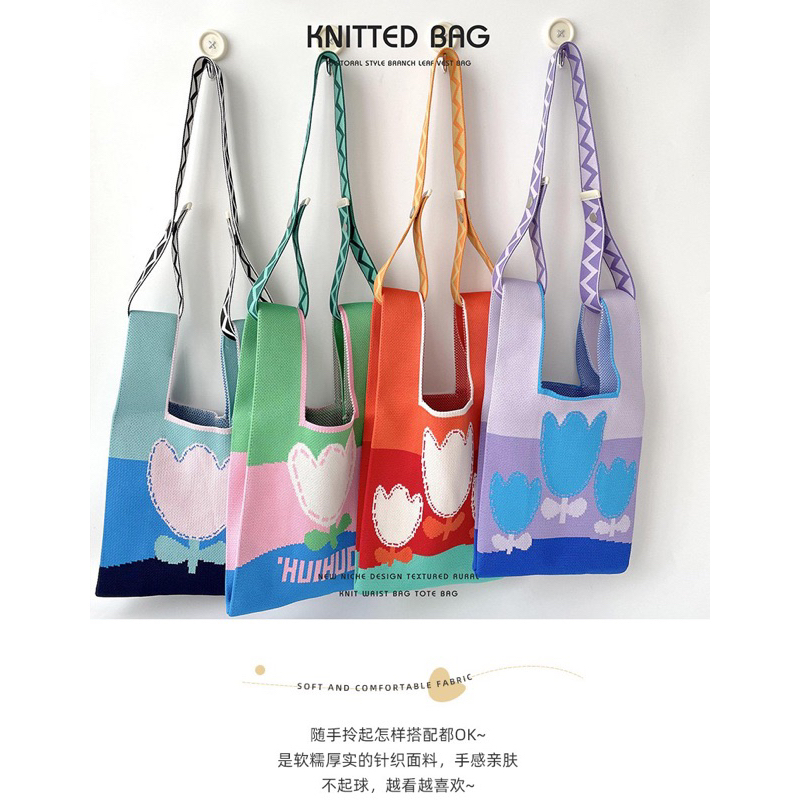 [Local] Knit bag/ Lunch bag/ Candy Color Striped Knit Handbag/ Tote Bag Women Handbags
