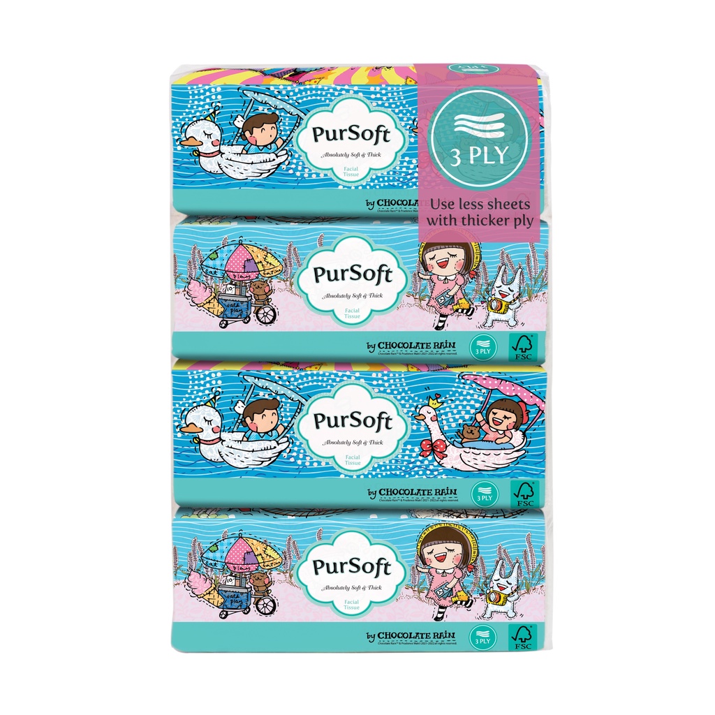 PurSoft 3ply Chocolate Rain Outdoor Soft Pack 120 sheets, Pack of 4