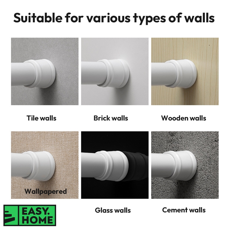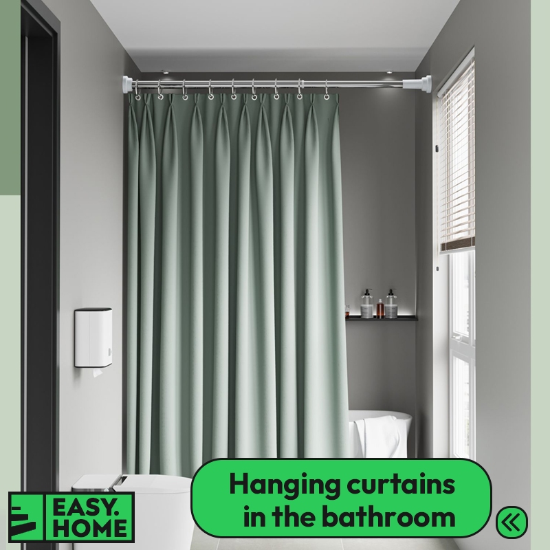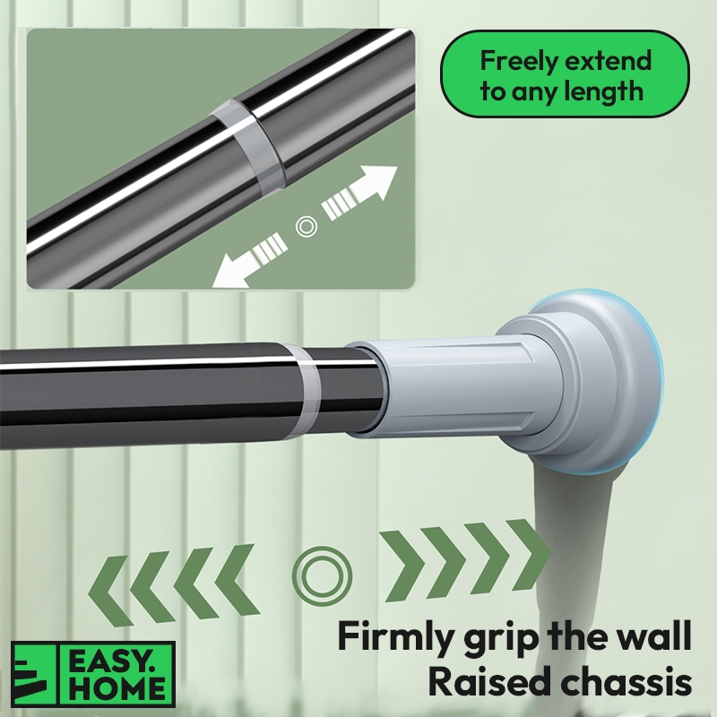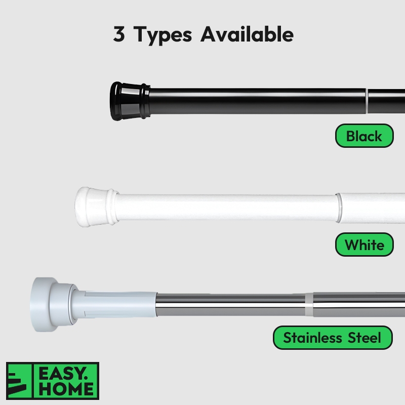 【SG Stock】 Stainless Steel Round Adjustable Extendable Curtain Rod Telescopic Tension Shower Rod Laundry Pole No Drill