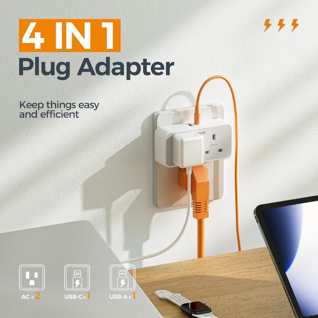 Best Feature(s):fixed multiple plug work like extension with cable with usb (C) Value For Money:bundle deal with discount Performance:Good It works well with the USB C at better charging rate. Have to be careful not to overload. Good for charging low voltage devices such as iPad and phone concurrently. The vertical adapter is stable even without the port stabilizer.