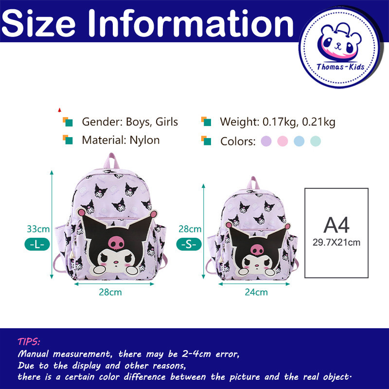 [THOMAS KIDS] Girls Backpacks Large Capacity Waterproof Schoolbag Cartoon Kuromi Shoulder Bag