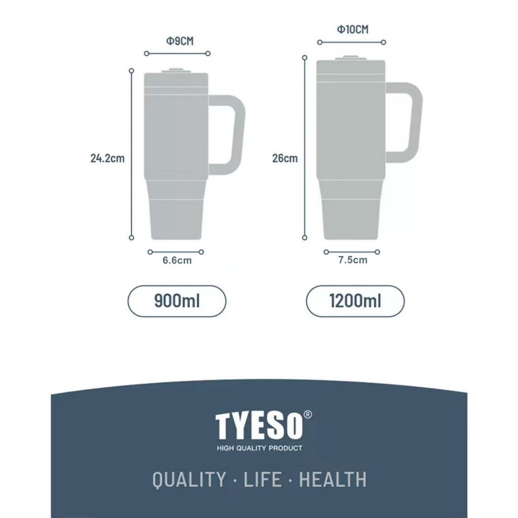 TYESO Thermal Tumbler Flask 900ml 1200ml Water Bottle Car Cup Vacuum Insulated Tumbler Coffee Cup